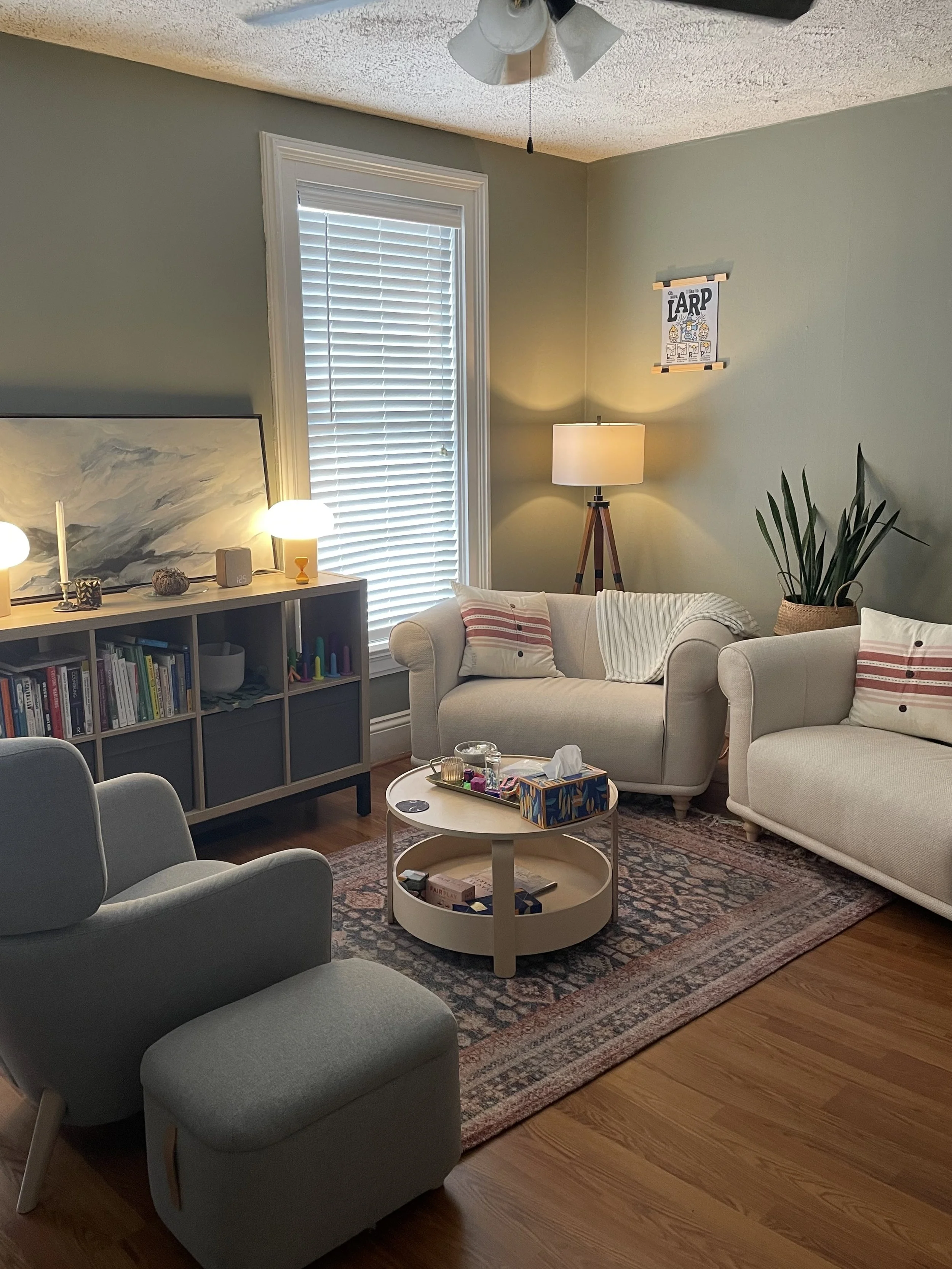 As a late-identified neurodivergent clinician, I strive to create a safe space for clients and couples to connect with their authentic selves - a space that feels safe to unmask even if for a short time. For some people, that might mean kicking off their shoes, sitting on the floor, turning overhead lights off, using a fidget, or having no expectations for sustained eye contact that feels forced/uncomfortable. I know the difficulty and intense vulnerability that comes with trying to unmask in therapy after a lifetime of masking to survive, so we will only take things at a rate that aligns with your goals, needs, and comfort.